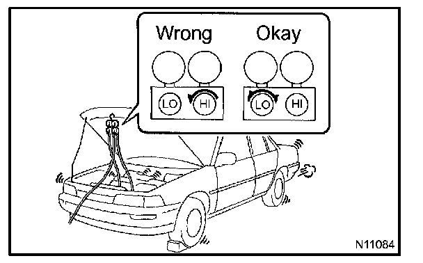 If the high pressure valve is opened, refrigerant flows in the reverse direction and could cause the charging cylinder to rupture, so open and close only the low pressure valve.