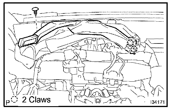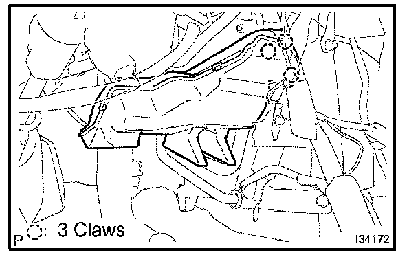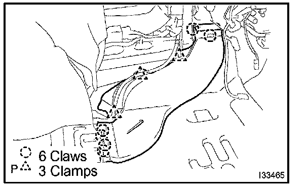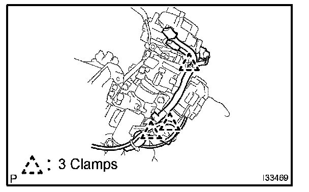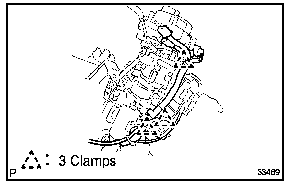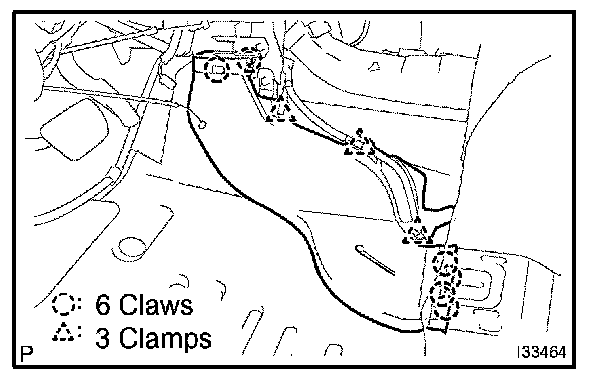HINT: Make sure the direction of the piping clamp claw and SST by checking the illustration shown on the caution label.