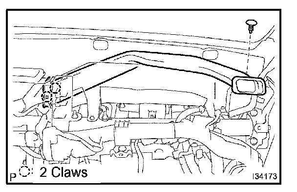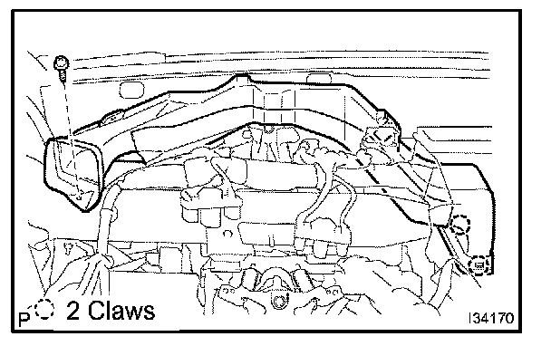 a. Release the 6 claw fittings and the 3 clamps, and remove the air duct rear No.2.