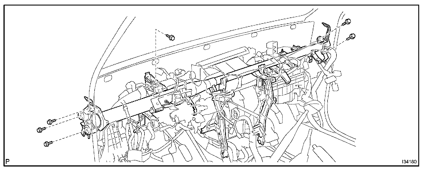 e. Remove the 7 bolts and the instrument panel reinforcement.