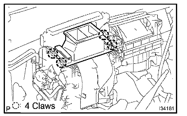 a. Release the 4 claw fittings and remove the heater to register duct assembly.