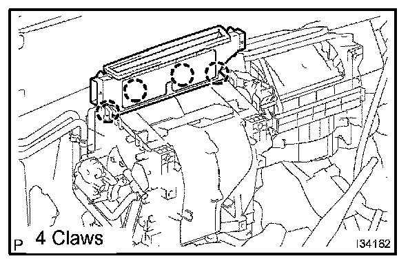 a. Release the 4 claw fittings and remove the defroster nozzle assembly lower.