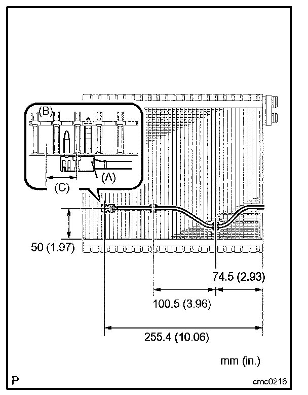 NOTE: If reusing the evaporator, DO NOT insert the thermistor to the position that it had been inserted before. Insert it to between the position C shown in the illustration.