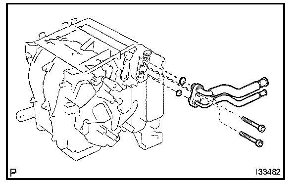 a. Using a hexagon wrench 4.0 mm (0.15 in.), remove the 2 hexagon bolts and the air conditioning tube assembly.