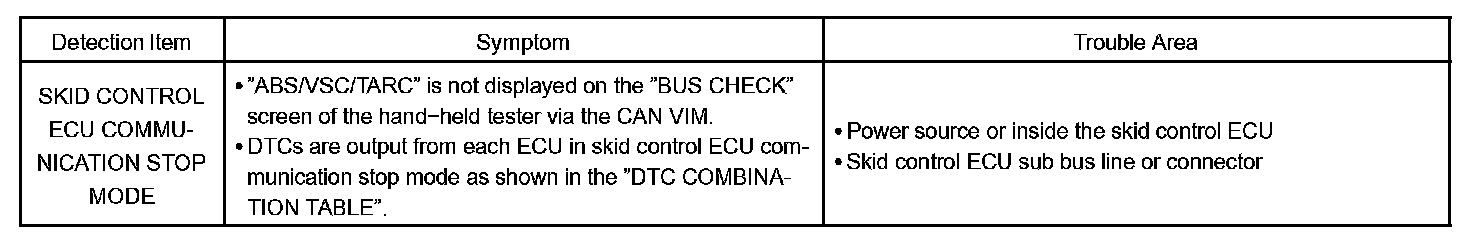 SKID CONTROL ECU COMMUNICATION STOP MODE