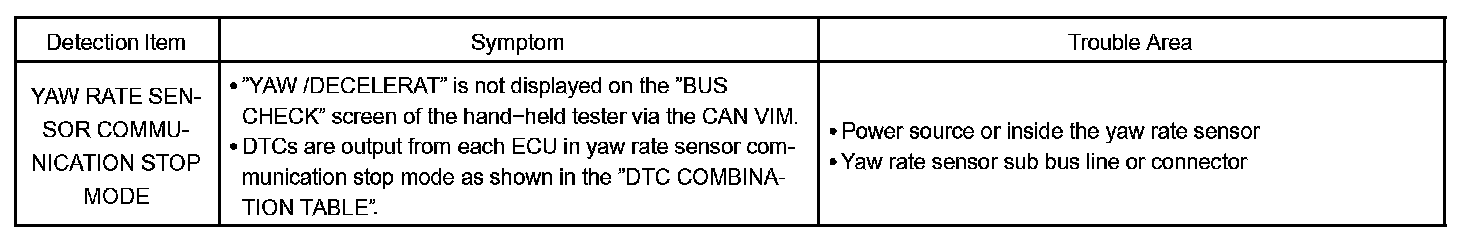 YAW RATE SENSOR COMMUNICATION STOP MODE