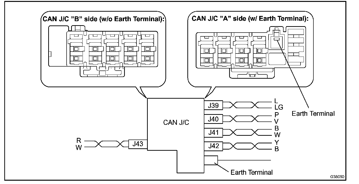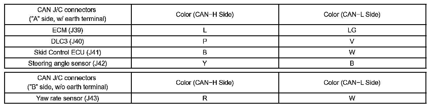 - The connectors connected to the CAN J/C can be distinguished by the colors of the bus lines and the connecting side of the connector.