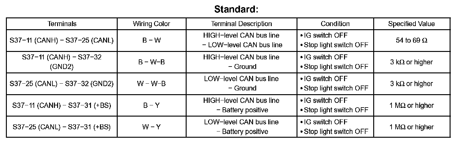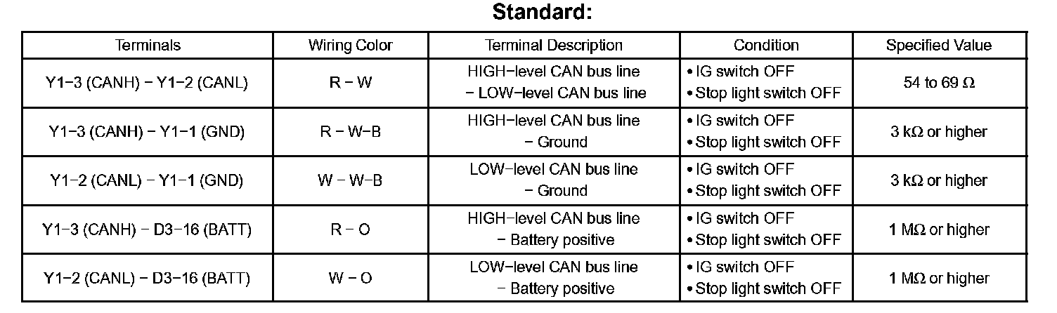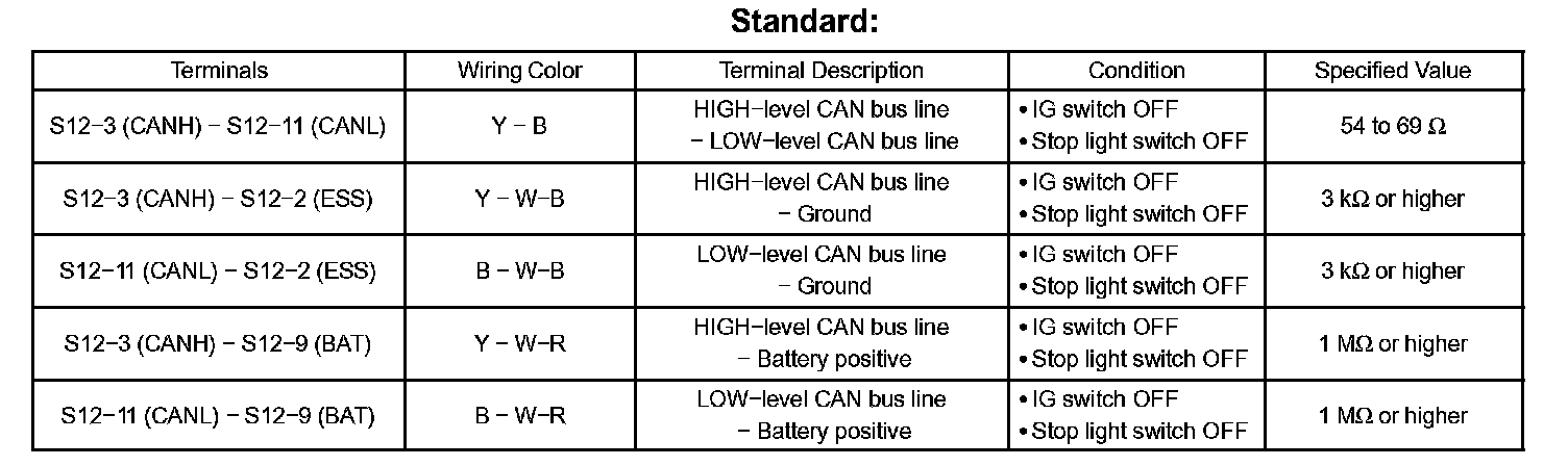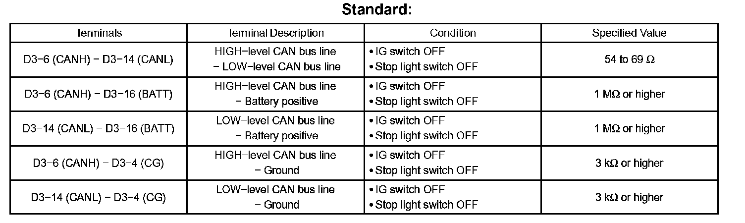 TERMINALS OF ECUHINT: This section describes the standard CAN values for all CAN related components.