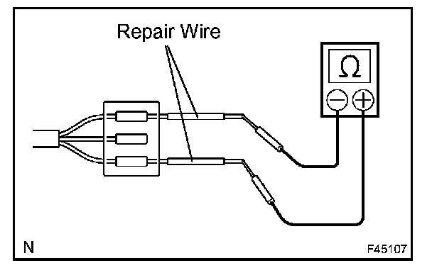 b. If it is impossible to check resistance from the back of the connector, use a repair wire to check it.