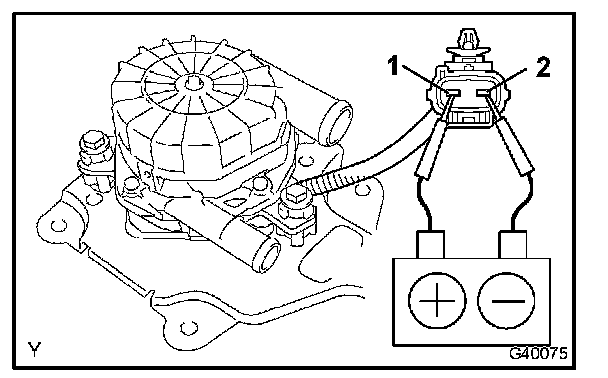 a. Connect the positive (+) lead from the battery to terminal 1 and the negative (-) lead to terminal 2, and check that air flows.