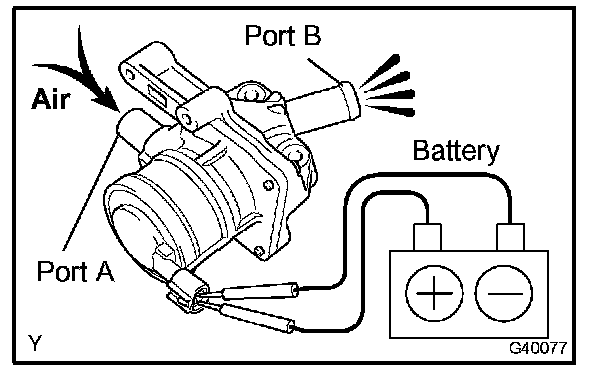 a. Blow air into port A and check that air is not discharged from port B.