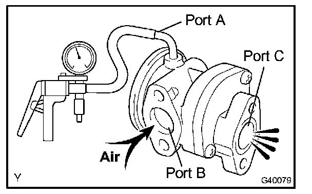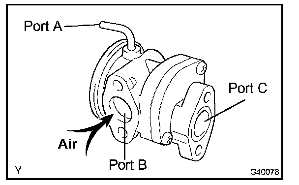 a. Blow air into port B and check that air is not discharged from port C.