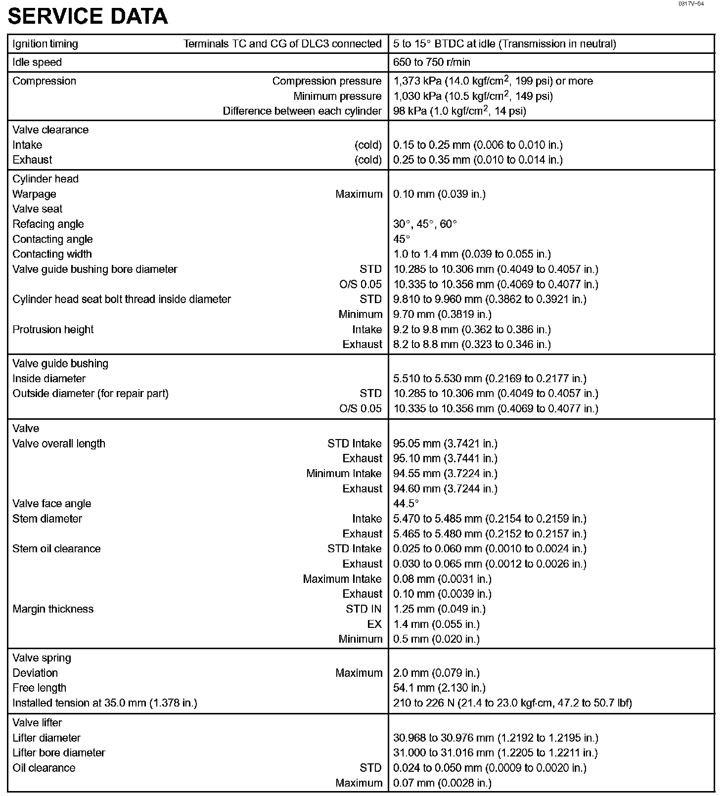 Engine Mechanical-Service Data (Part 1):