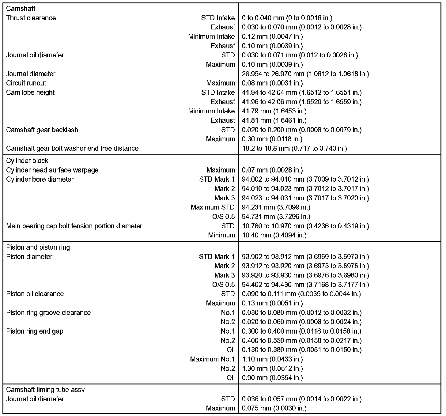 Engine Mechanical-Service Data (Part 2):