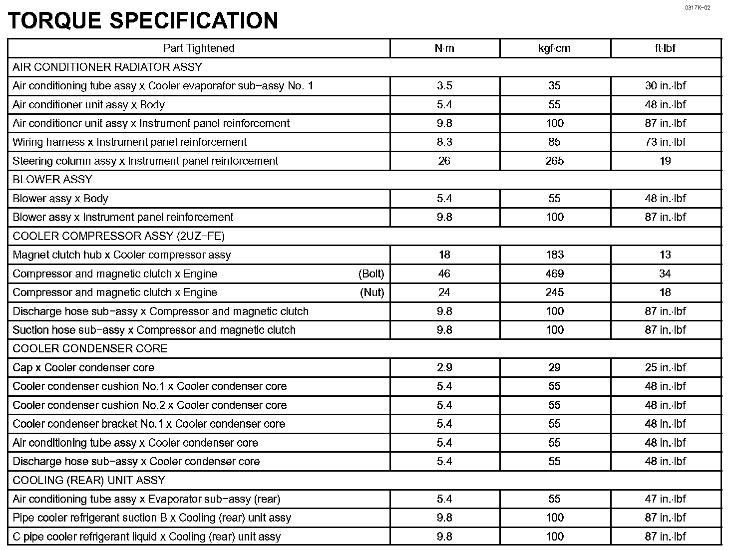 Heater And Air Conditioner-Torque Specification: