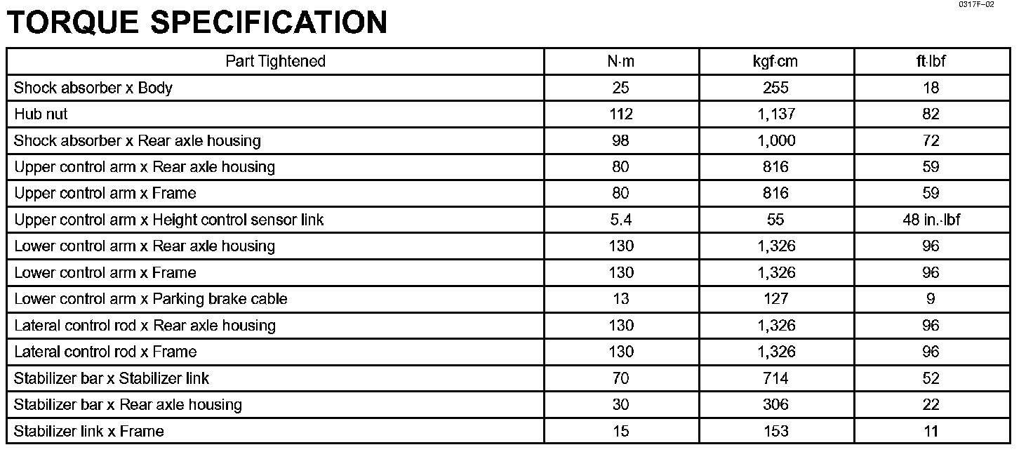Rear Suspension-Torque Specification: