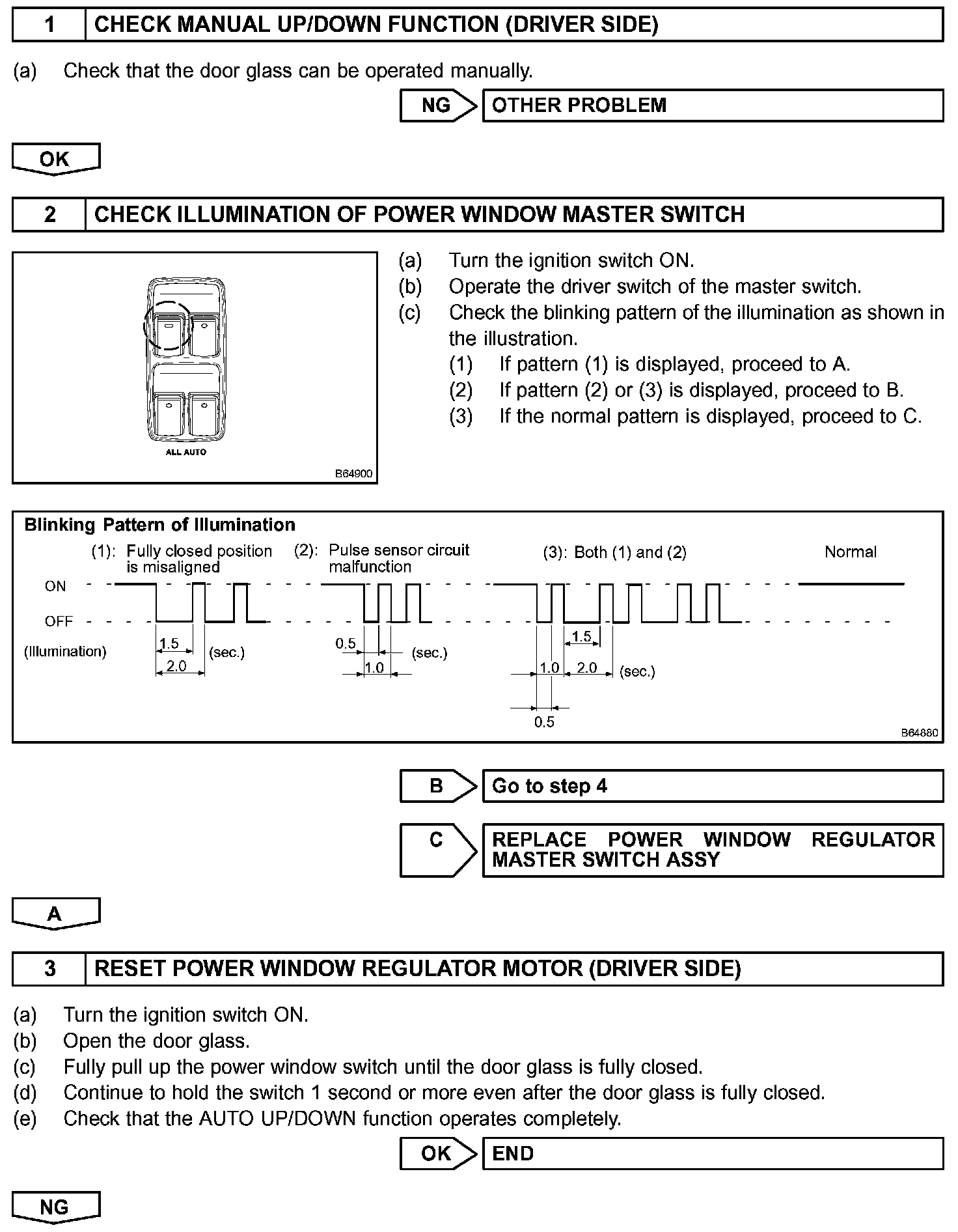 If the AUTO UP/DOWN function does not operate, any of the following troubles may be the cause: