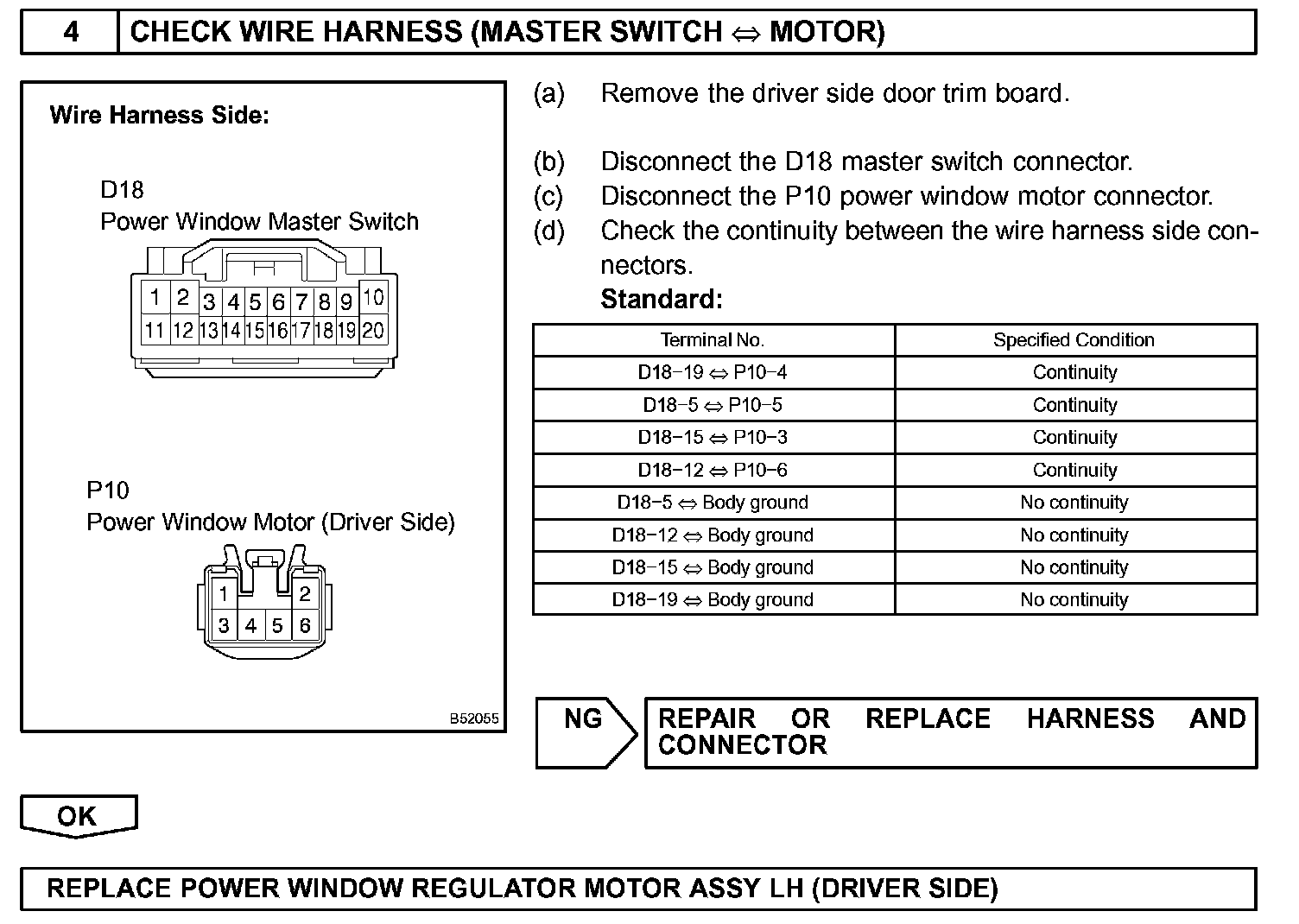 - There is an open or short circuit in the wiring between the power window switch and the corresponding power window motor.