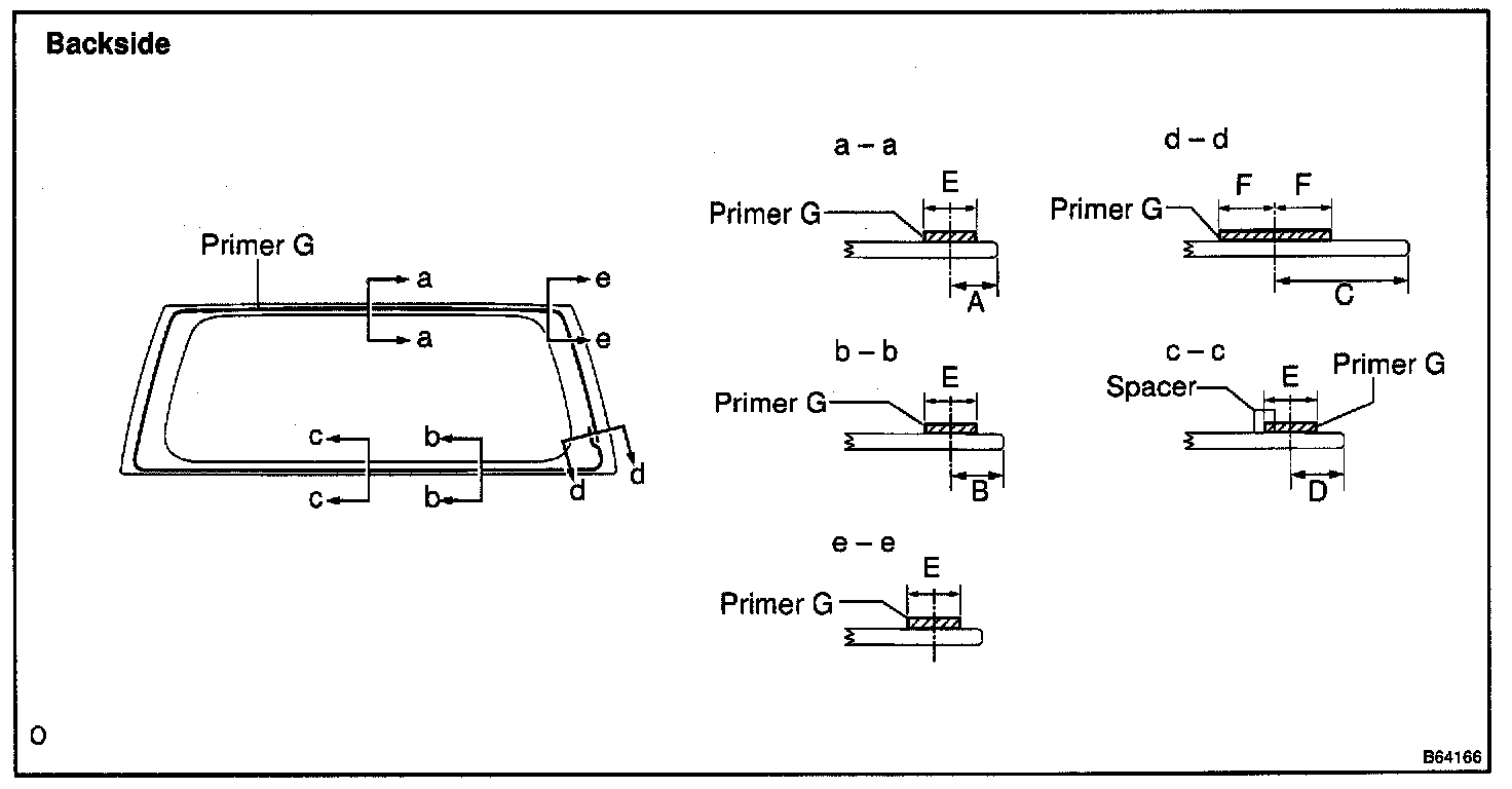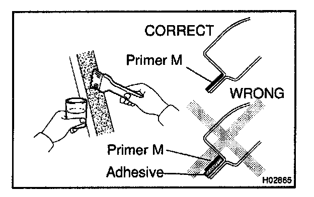 c. Using a brush or sponge, coat the edge of the glass and the contact surface with Primer G.