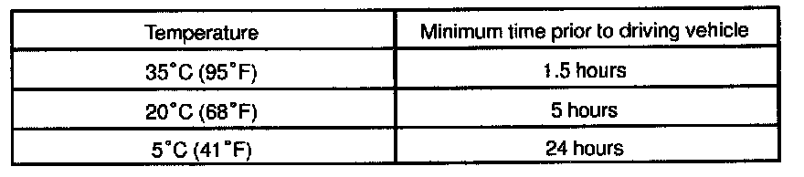 NOTE: Take care not to drive the vehicle for the time described in the table.