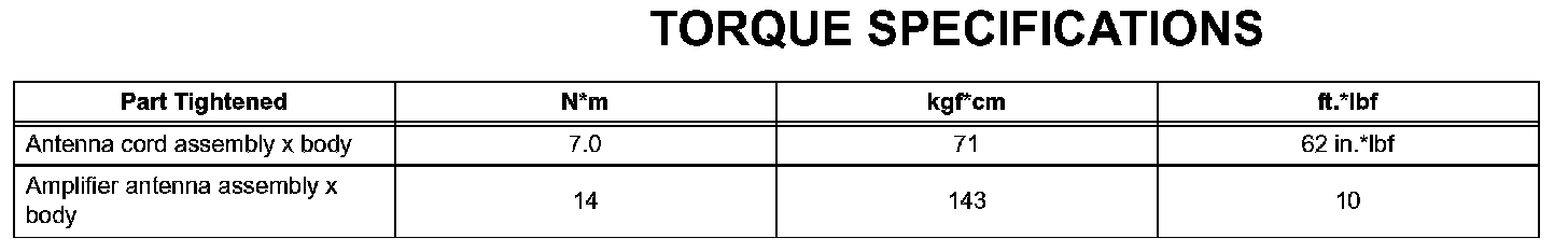 Audio / Visual-Torque Specifications: