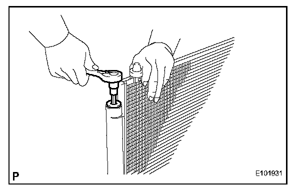 c. Using a straight hexagon wrench 14 mm, install the cap to the cooler condenser core.