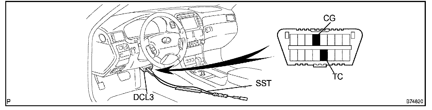 1. Using SST, connect terminals TC and CG of the DLC3.