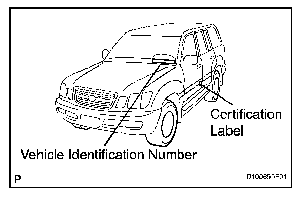 The vehicle identification number is stamped on the vehicle body and on the certification label, as shown in the illustration.
