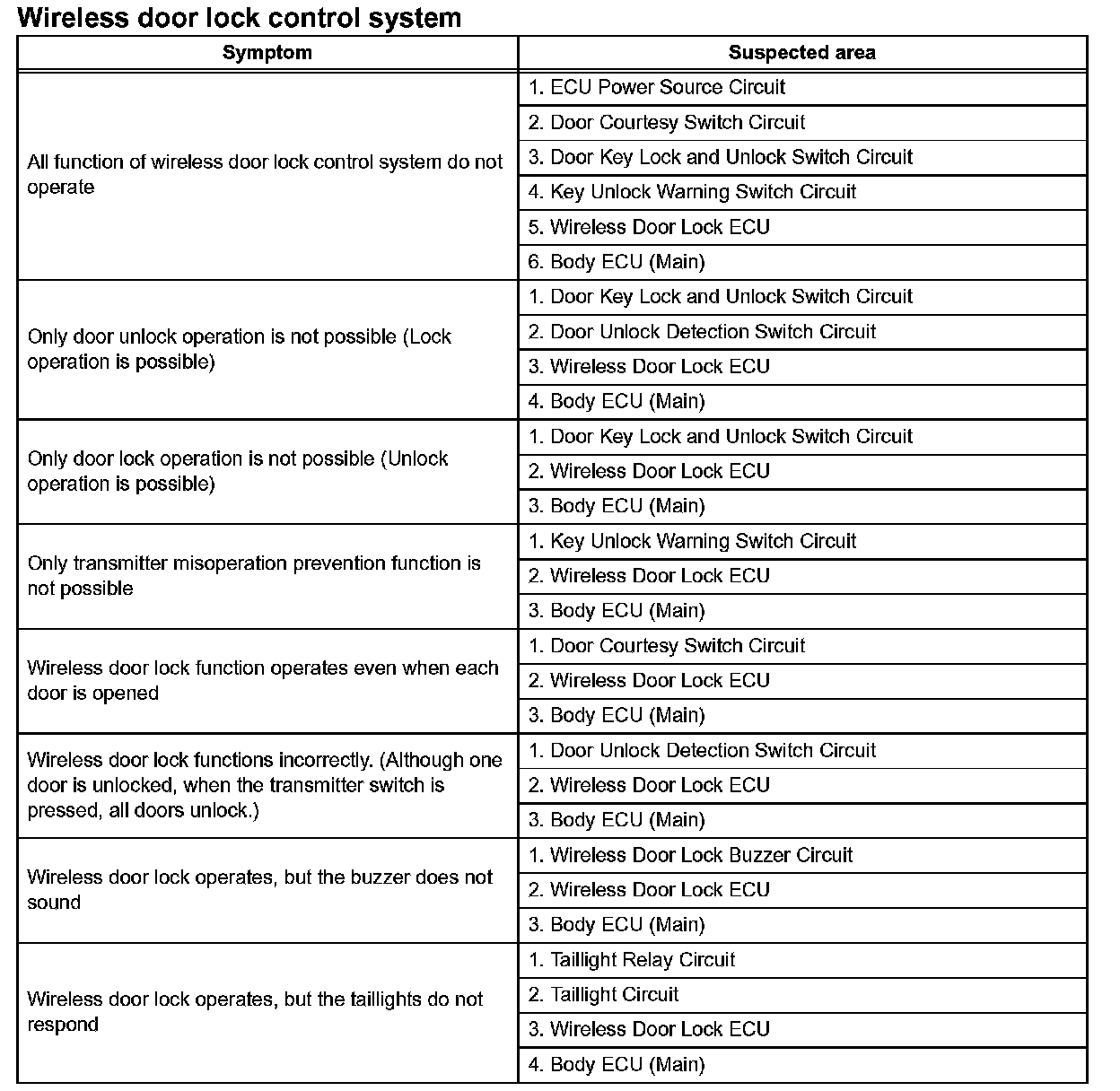 PROBLEM SYMPTOMS TABLEProblem Symptoms Table-Wireless Door Lock Control System: