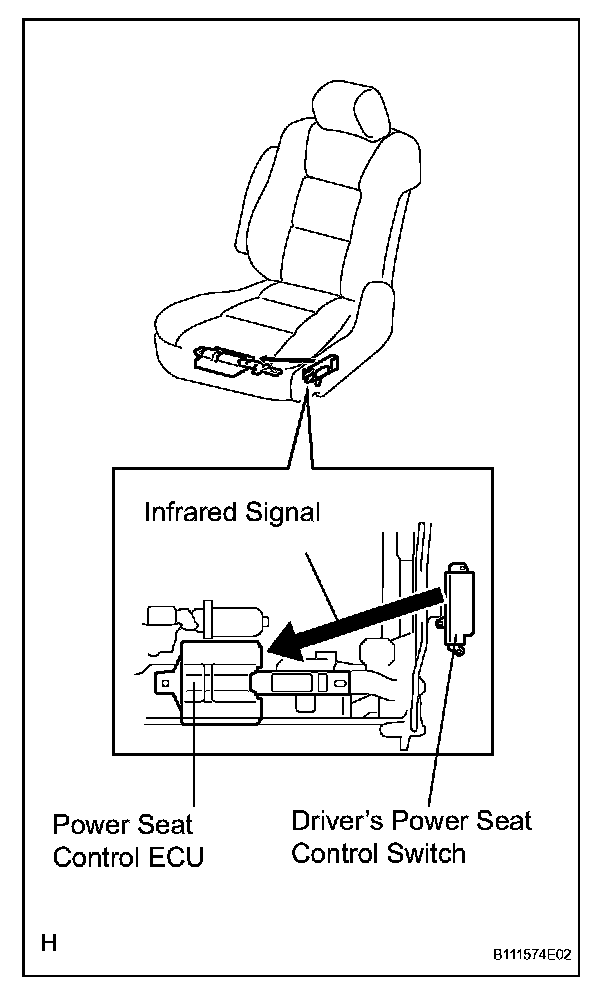 If dirt or foreign matter contaminates the power seat control ECU or the part of the driver's power seat control switch that receives and sends infrared signals, signals will not be able to be sent or received. In this case, wipe the lens with a soft cloth.