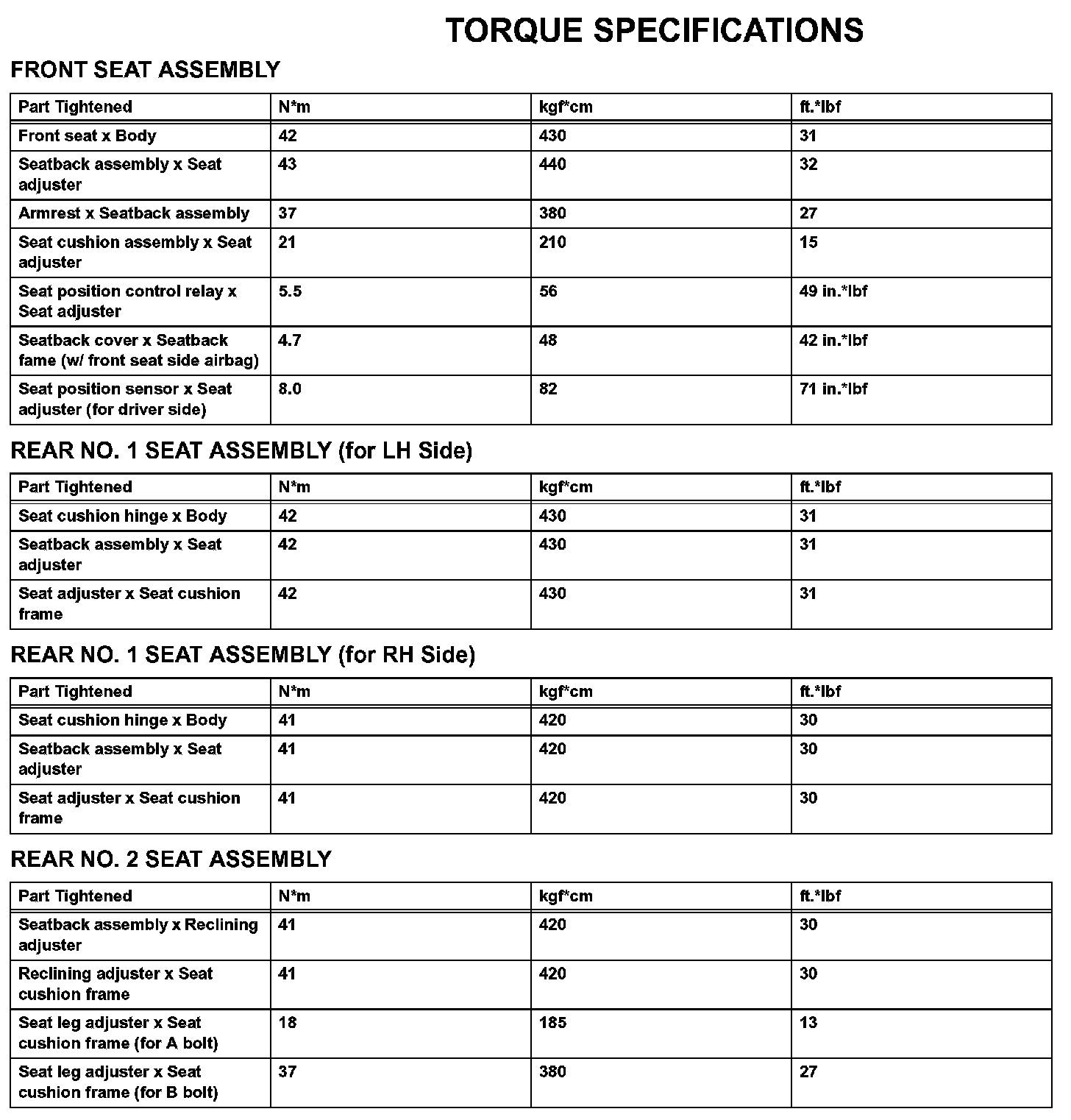 Seat-Torque Specifications: