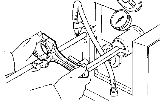 d. Using a pin hole grinder, hone the bush to obtain the standard clearance between the bush and piston pin.