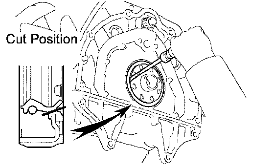 HINT: There are 2 ways to remove the oil seal: remove it with the rear oil seal retainer removed from the cylinder block, or remove it with the rear oil seal retainer installed to the cylinder block.
