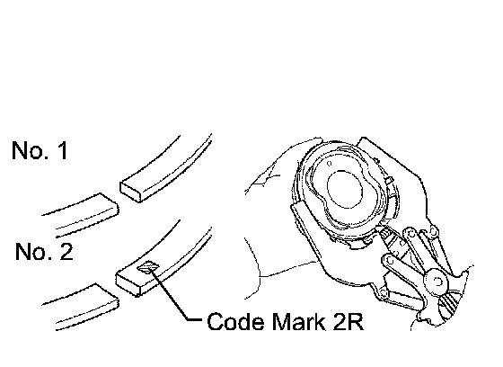i. Using a piston ring expander, install the No. 1 and No. 2 piston rings with the code mark facing upward.