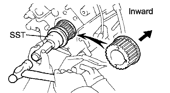 b. Using SST and a hammer, tap in the timing pulley with the flange side facing inward.