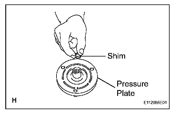 If the clearance is not within the standard clearance, adjust the clearance using shims to obtain the standard clearance.