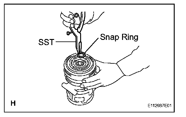 NOTE: The snap ring should be installed so that its beveled side facing up.