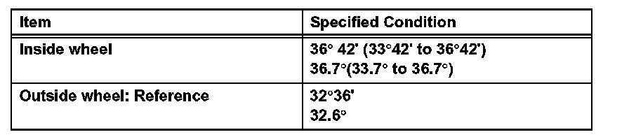 If the right and left inside wheel angles differ from the specified value, check the right and left rack end lengths.