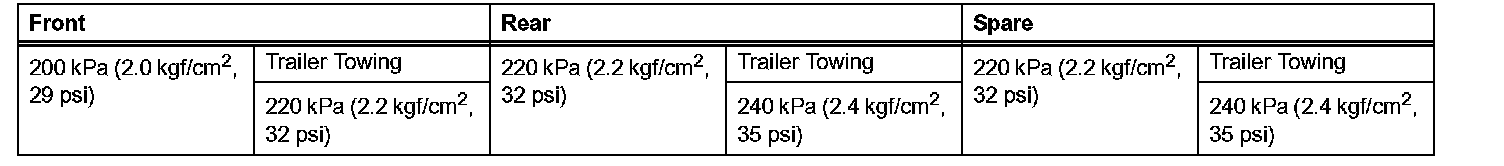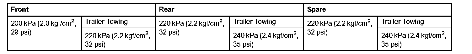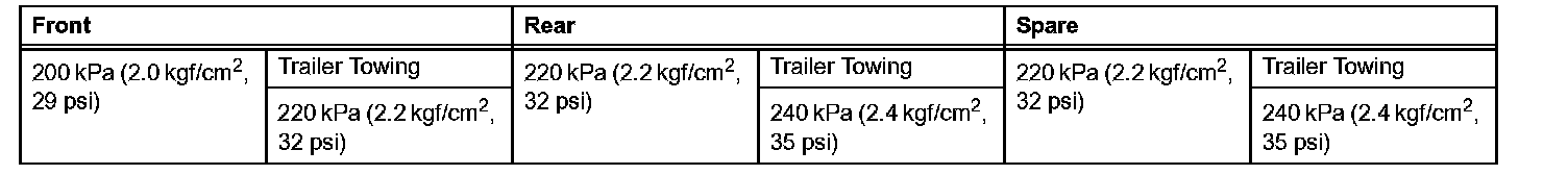 ^ The tire pressure of any tire is 120 kPa (1.2 kgf/cm2, 17 psi) when measured with the intelligent tester.
