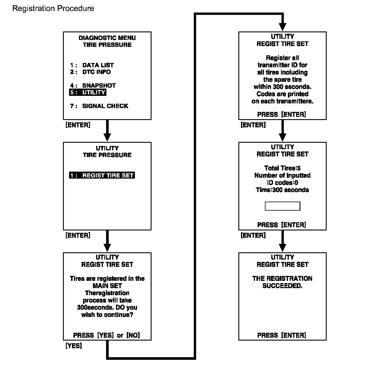 e. *2: Select the REGIST TIRE following the intelligent tester screen (UTILITY - REGIST TIRE).
