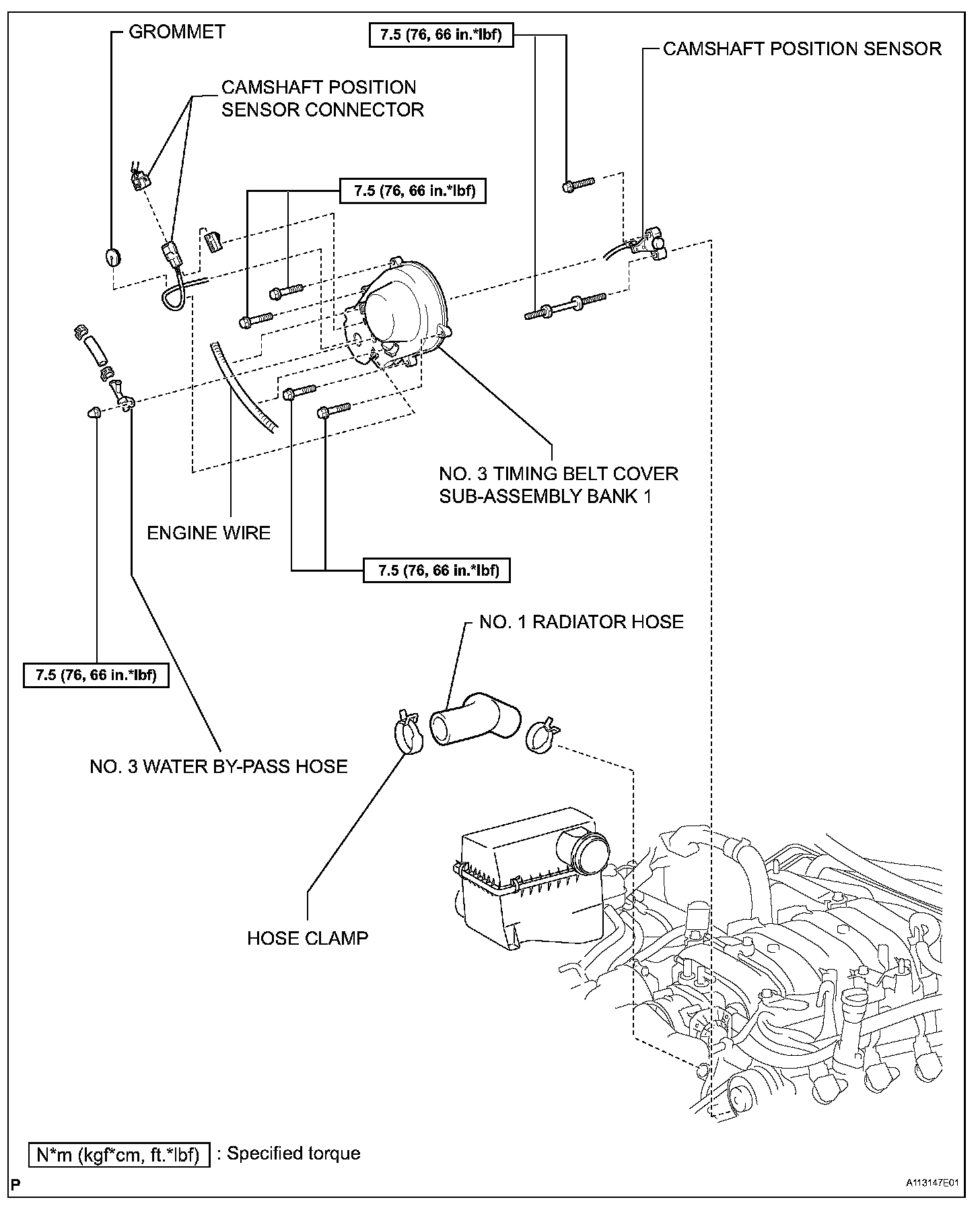 Torque: 7.5 N.m (76 kgf.cm, 66 in.lbf)