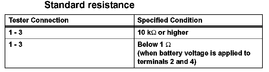 If the result is not as specified, replace the relay.