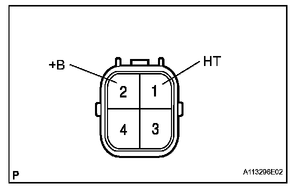 b. Measure the heated resistance between terminals 1 (HT) and 2 (+B) of the sensor.