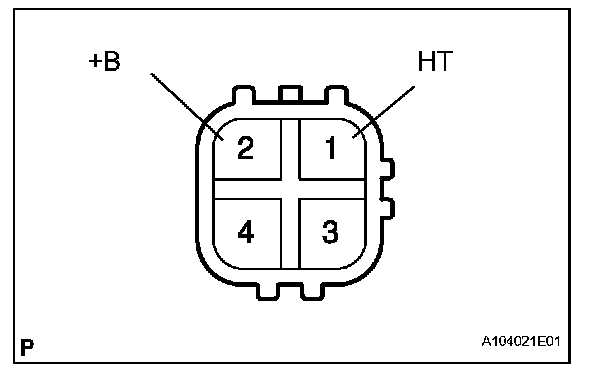 b. Measure the heater resistance between terminals 1 (HT) and 2 (+B) of the sensor.