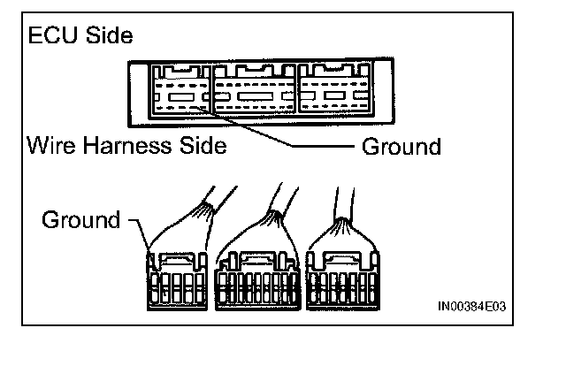 2. Disconnect the ECU connector. Check the ground terminal on the ECU side and wire harness side for bending, corrosion or foreign matter. Lastly, check the contact pressure of the female terminals.