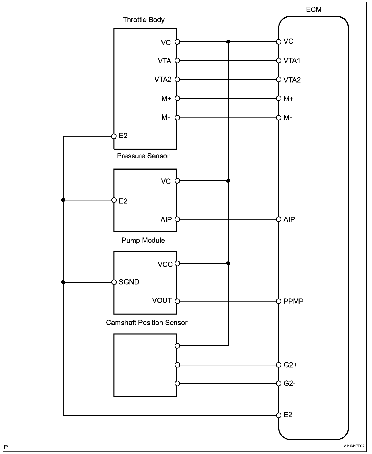 The VC voltage (5 V) is generated in the ECM. The voltage is used to supply power to the throttle position sensor, canister pump module, etc.