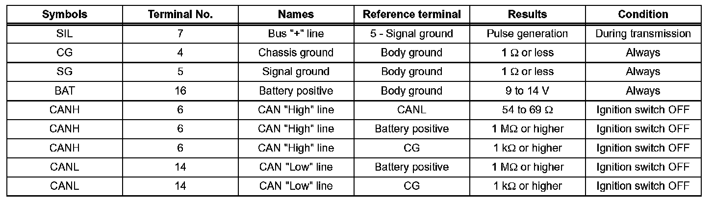 If the result is not as specified, the DLC3 may have a malfunction. Repair or replace the harness and connector.
