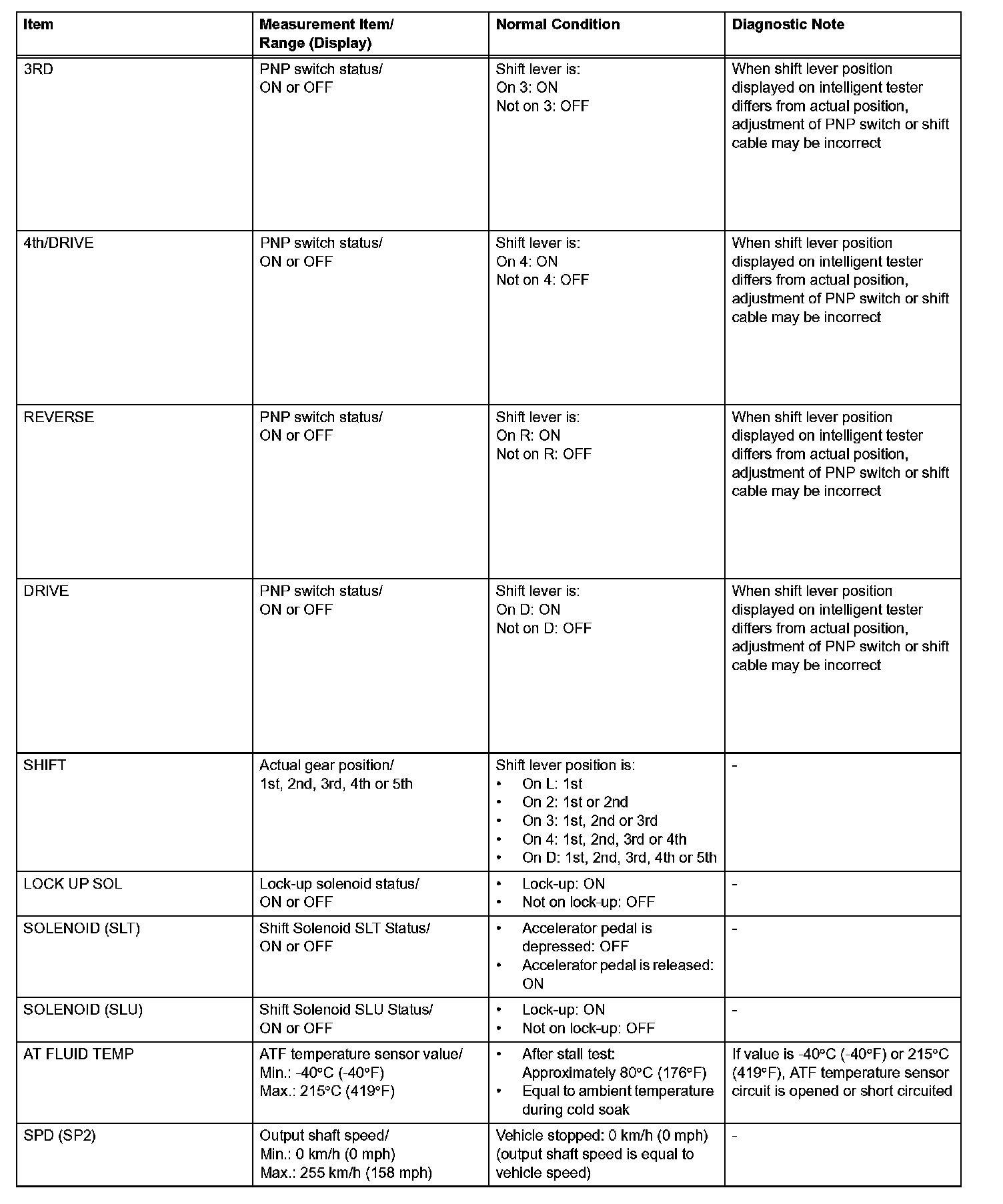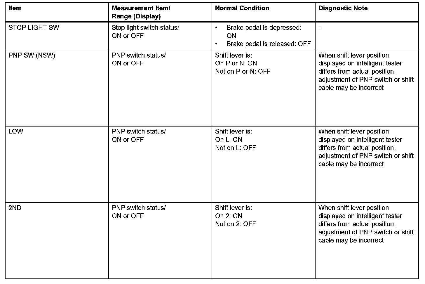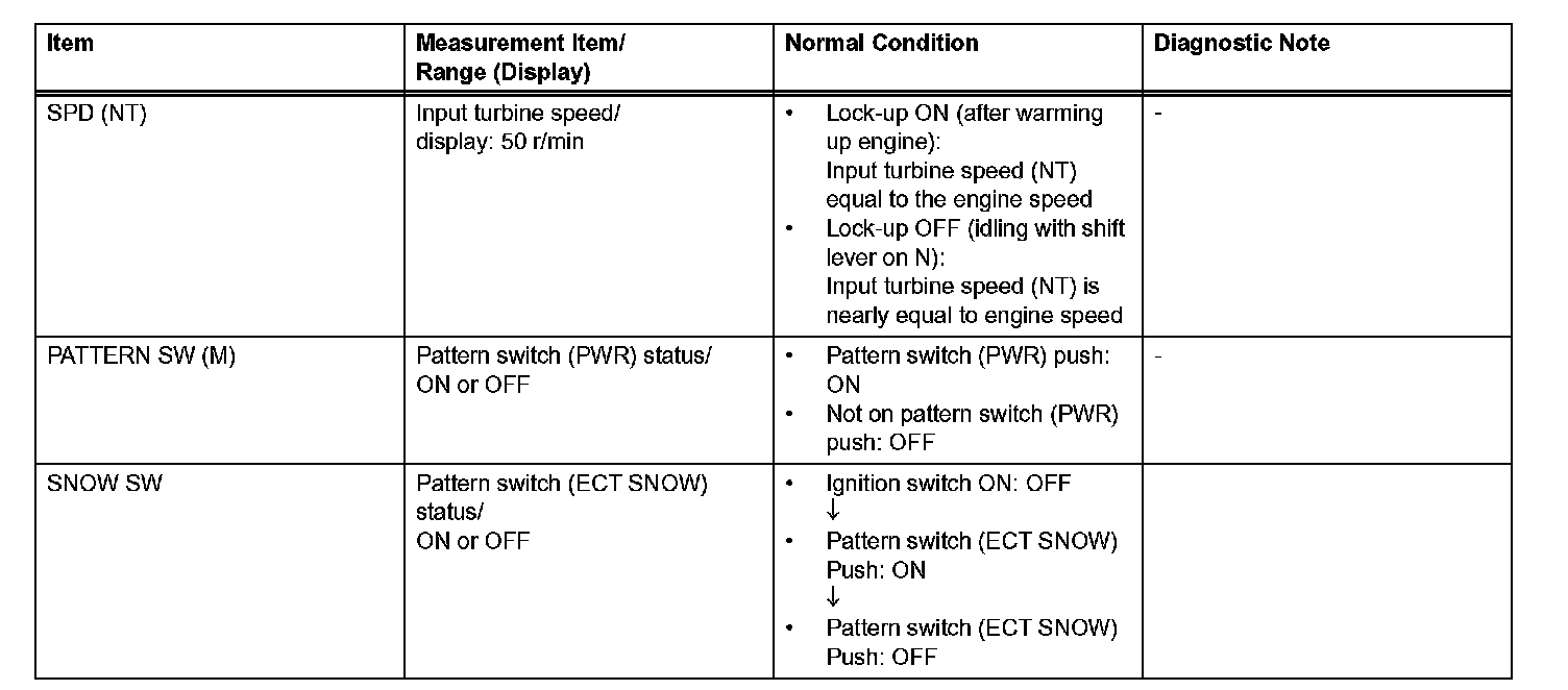 HINT: Using the intelligent tester's DATA LIST allows switch, sensor, actuator, and other item values to be read without removing any parts. Reading the DATA LIST early in troubleshooting is one way to save time.