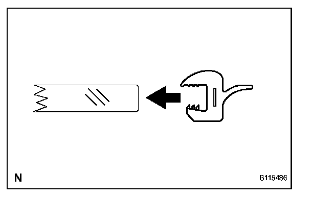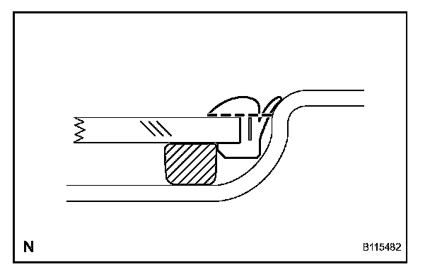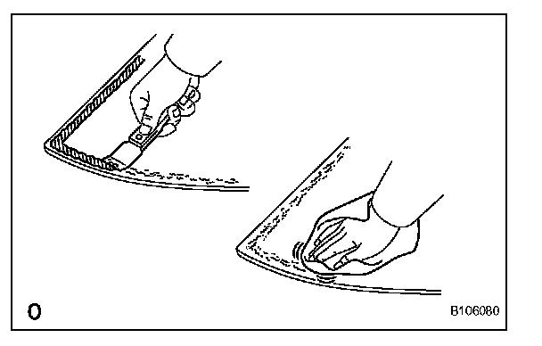 1. On the contact surface of the vehicle body, use a knife to cut away excess adhesive as shown in the illustration.