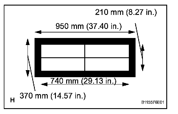 3. Make sure that the center line of the paper is 95 mm (3.74 in.) to the right of the center line of the vehicle.
